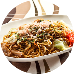 ソース焼きそば麺と具材をスチコンに入れるだけ。炒めずにできるので大人数の調理にも大活躍!