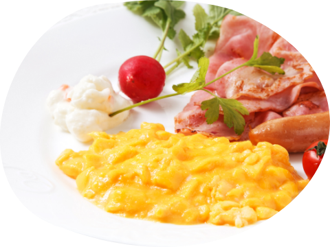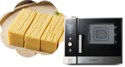 コンビモードは熱風と蒸気を使って加熱するので、熱伝導が早いのが特徴です。フライパンなどで調理するよりも低い温度でもムラなくしっかり加熱することができるので、加熱しすぎによる卵の乾燥が少なく、理想の食感に仕上げることができます。