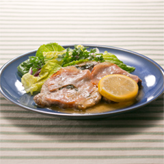 お肉に生ハム、セージをのせて焼く簡単イタリアン。コンビ加熱でジューシーな仕上がりに。
