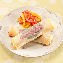 梅干しの酸っぱさで食欲アップ!夏バテ予防に効果的な春巻きを、揚げずにパリパリに。