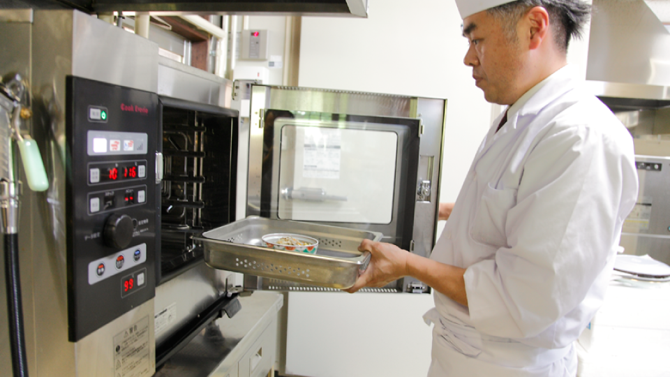 料理人は自分の手の感覚が温度計代わりなんですよ。だから、数字で表された温度に最初は戸惑いました。でも、覚えてしまえば問題ないし、加熱中に他のことができるので、調理作業がかなり楽になりましたね。クックエブリオ1台になってスペースも有効活用できるし、何より仕上がりが大きく変わりました。オーブンだとパサパサ感のあった焼き魚も、クックエブリオだと外はカリカリで中はしっかりと水分が残っているんです。茶わん蒸しや豆腐、真薯もふわっとした口当たりに仕上がるんですよ。