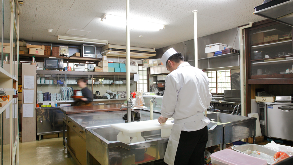 三代目料理長の北村さん。東京で修行を重ねた後、家業の「八光苑」を継いだそう。