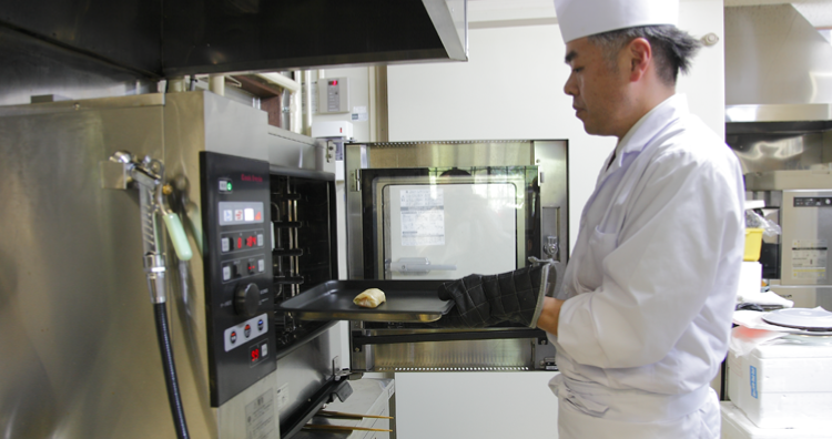 加熱完了後、ホテルパンを取り出す。
