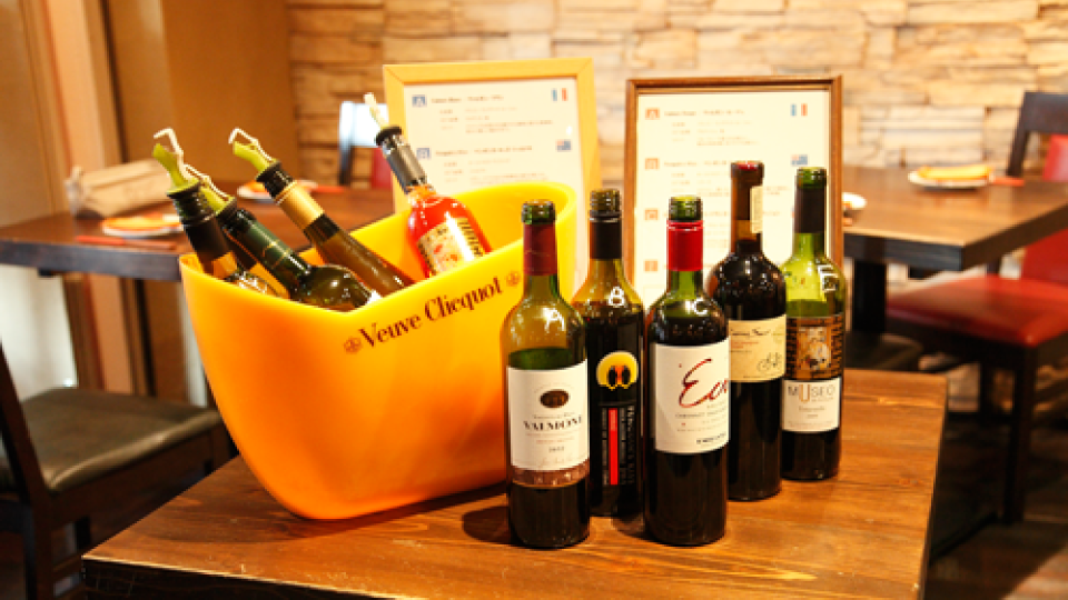 おいしい料理だけでなく、ソムリエである大岩さんがセレクトしたワインも人気。 ワインの飲み放題は2時間でなんと1,600円。