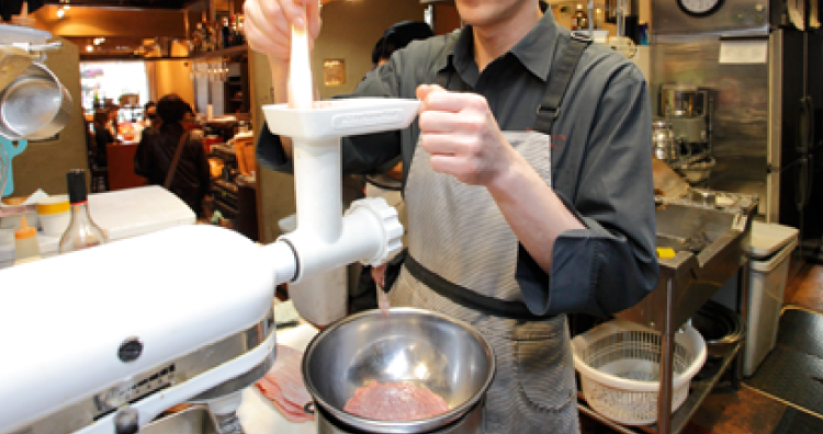 肉をミンサーにかけてミンチにし、<材料a>を入れて混ぜ合わせる。