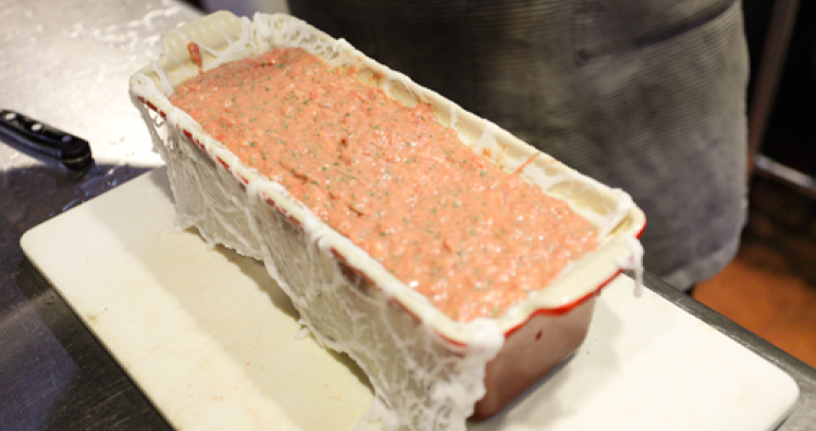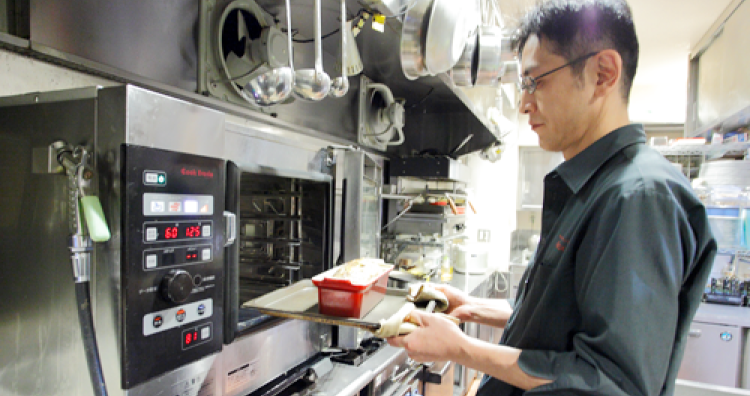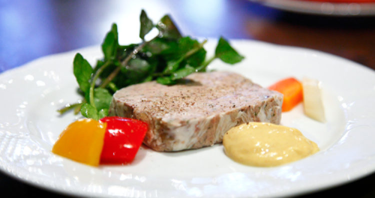 シンプルな材料で作る「田舎風パテ」。オーブンからクックエブリオへ調理を移行して、30分の時間短縮につながりました。しっとりと仕上がったパテは、やわらかな食感から肉の味わいと香りがふわっとあふれ出す、ワインにぴったりのお料理。今回、大岩さんのご好意により、レシピを特別に公開いたします。