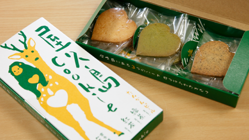 樹齢3000年を誇る屋久杉の切り株「ウィルソン株」、屋久鹿のおしり、サルのおしりなど、屋久島にはハート形がたくさん隠れていることからクッキーもハート形に。旅のお土産話に花が咲きそうです。