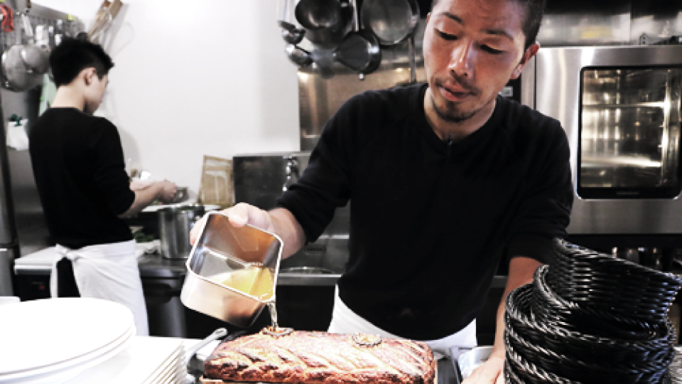 フランスのプロヴァンス地方とアルザス地方、そしてパリで合計11年間の修業を重ね、昨年ようやく自分の店を持つことができました。一時帰国するたびに、ホシザキに勤める親友へ「俺が店を持つときは頼むよ」と伝えてあったので、オープンが決まるとすぐに彼が動いてくれたんです。フランス時代から使っていたスチコンと真空包装機は必ず入れると決めていました。設計段階からホシザキの担当さんと設計士を交えて何度もミーティングを重ね、それこそ数センチ、数ミリ単位までレイアウトの調整をしたおかげで、満足のいく厨房になりました。