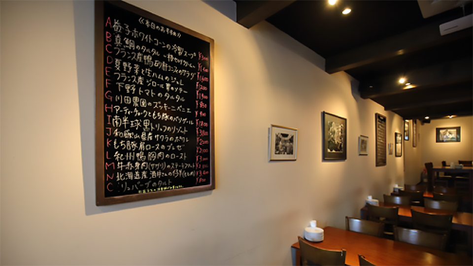 メニューボードに書かれたアラカルト料理にもパストリゼの技術が活かされていて、常に魅力的な内容でお客様をお出迎えしています。