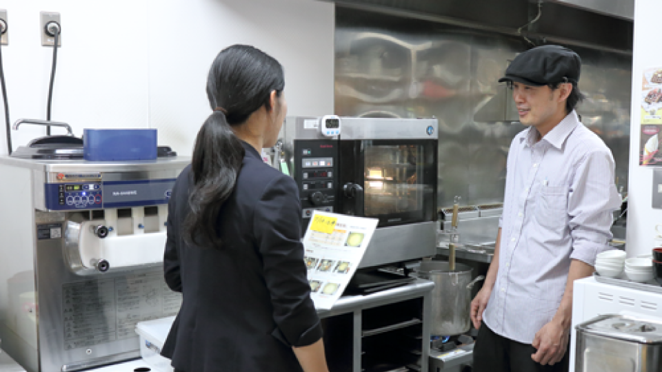 ホシザキのコンサル室と。「温度設定などのアドバイスが参考になって助かっています」とマネージャーの飯泉さん。