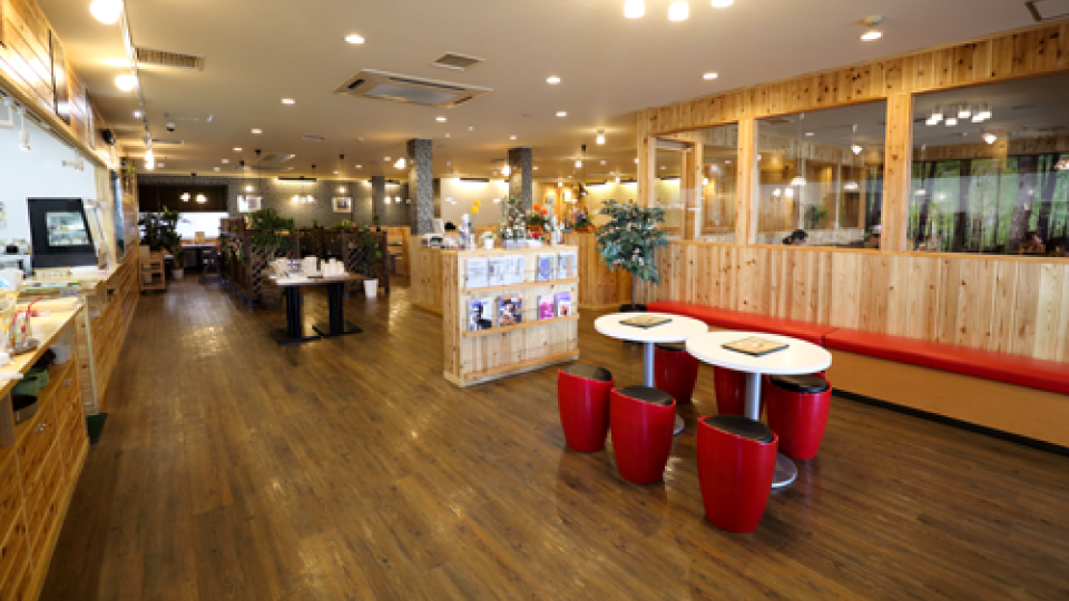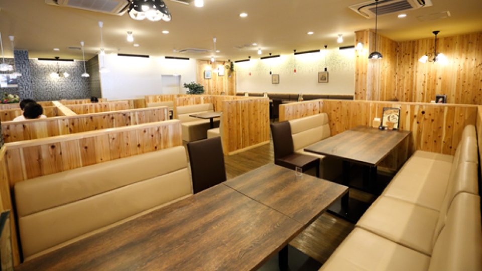 139席ある店内は、通路幅を広くとっているので、お子様連れや車椅子の方もスイスイと移動可能。