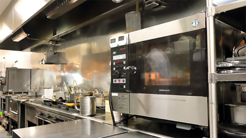 フード用とスイーツ用に2台導入されたクックエブリオ。それぞれスタッフの動線を考えて配置されました。調理スタッフはもちろんのこと、ホールスタッフも使い方をマスターしているそう。