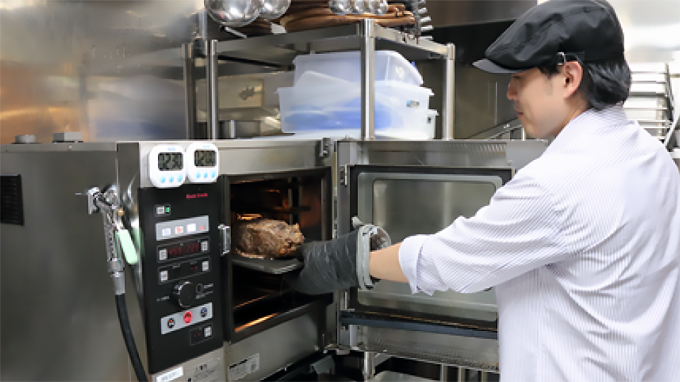 ローストビーフは以前、フライパンで焼き色を付けてから、スチーム・70℃で1時間火入れしていました。最近、ホシザキさんに芯温センサーの使い方を教えてもらったので、レシピを改良している最中です。芯温を何度に設定するか、コンビにするかスチームにするか…いろいろ試してベストな仕上がりを探っています。これからはほかのメニューにも芯温センサーを活用して、グレードアップしていきたいですね。