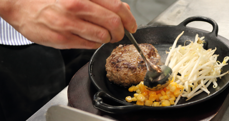 ハンバーグをおいしく仕上げるコツは、なんといっても肉汁を閉じ込めること。高温・高水蒸気量のコンビモードを使えば、短時間でジューシーに焼き上がります。今回ご好意により、このレシピを特別に公開いたします。