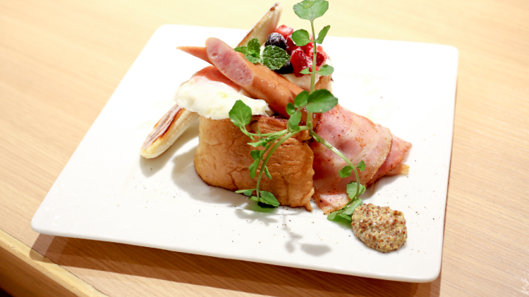 福岡の繁華街・天神から徒歩圏内に位置する「福岡東映ホテル」。その1階にリニューアルオープンした「ビストロ アトリ」は、フランス・イタリア・スペイン料理をベースにした洋食屋風ビストロ。併設した「バル アトリ」でもその料理が味わえます。地元の厳選食材と世界の高級食材を使用しながらも、リーズナブルな価格で楽しめると、宿泊客だけでなく、ビジター客にも大人気。ランチタイムは宮城県産の幻の牛肉「尾崎牛」を使った牛丼や、フォアグラを載せたリッチなステーキランチが好評です。ホテルの朝食で提供されるボリュームたっぷりのフレンチトーストも、観光やビジネスで訪れた宿泊客に喜ばれています。