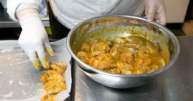 インド料理の中でもポピュラーで、子どもにも人気のタンドリーチキン。本来は特製の窯「タンドール」で焼き上げますが、スチコンのコンビモードを使えば本場さながらのジューシーな仕上がりに。今回ご好意により、ohdou cafe様直伝のレシピを特別に公開いたします。