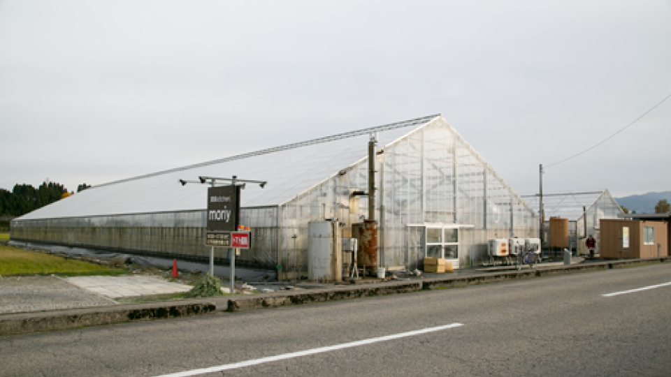 農園kitchen moriyのすぐ横にある森田農園のハウス。中からはモーツァルトの調べが聞こえてきます。一年を通して黄色と赤のミニトマト、フルーツトマト、調理用トマトの「シシリアンルージュ」を栽培。