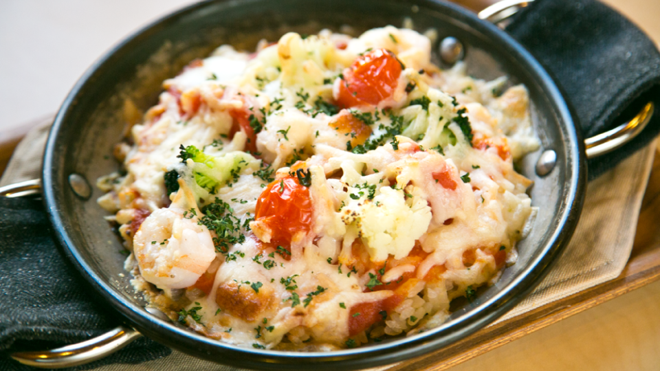 冬限定の焼きトマトリゾットは、自家製のトマトソースをたっぷりかけ、コンビで焼成。10人前が6分20秒で焼き上がるので、まとまった注文が入っても安心です。