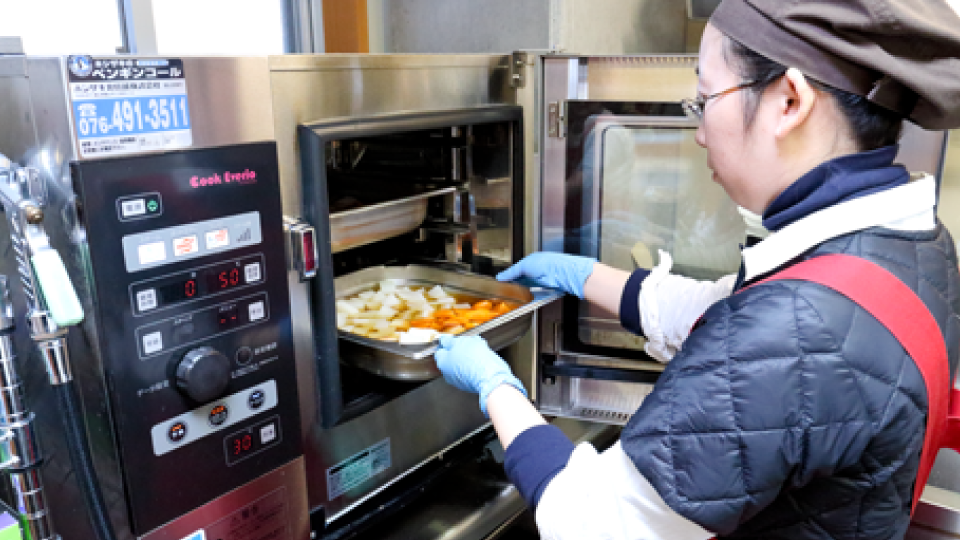 簡単な操作説明を受けただけで、スチコンを感覚的に使えるようになったという法野さん。下ごしらえだけでなく煮物や焼き物にも使い、一日中フル稼働させているそうです。