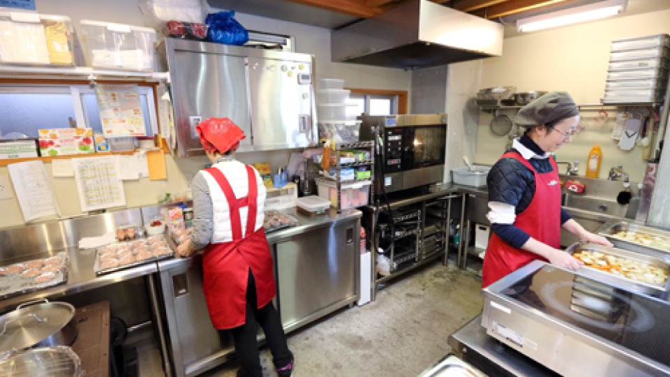 惣菜や弁当用の食材は、となりの農産物直売所で調達。お客様が買われた後に、次の日の野菜を選びます。日によって手に入るものが変わるので、売り場を見てからメニューを考えています。冷蔵庫にあるものでササッと作る、家の献立と同じ感覚ですね。 鍋や蒸し器でする調理は、クックエブリオが一手に引き受けてくれるので大助かり。湯沸かしも必要ないし予熱も早いから、煮物や和え物、ハンバーグなど、お昼前までに何品も仕上げられます。 なじみ深い家庭料理が日替わりで食べられると、地元の方にも喜んでいただいていますよ。
