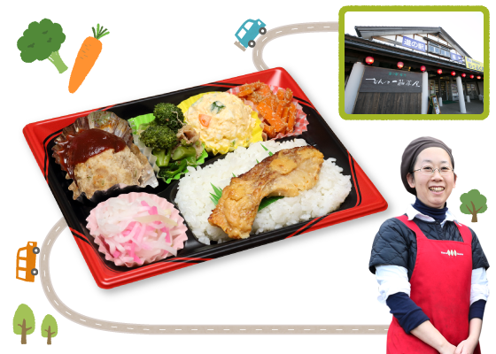 隣接する農産物直売所の食材を活かし地方色あふれる惣菜や弁当を製造・販売しています。