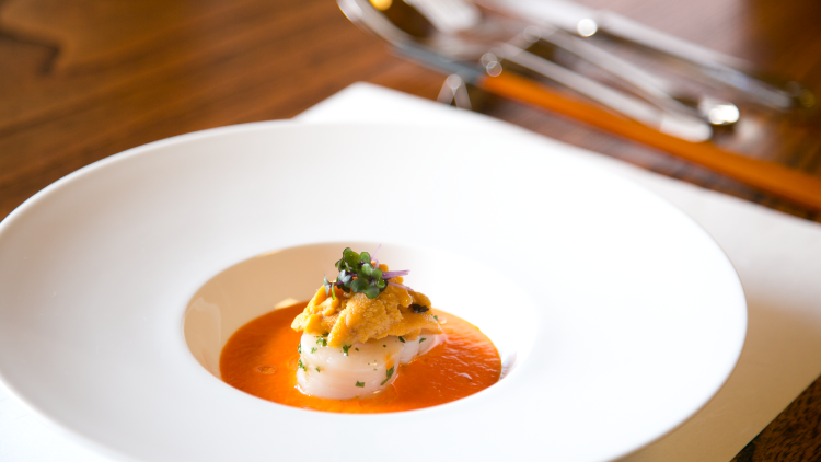 プロヴァンスと東京の名店で修業したシェフが、長尾家の本家邸宅を活かして2016年11月にオープン。純和風の空間で楽しむフレンチが話題となり、早くも地元マダムたちの心をとらえて離しません。ランチもディナーもお任せコースのみで、肩肘張らずに食べて欲しいとの思いから、お箸も用意。旬の野菜や瀬戸内の海の幸、香川のブランド牛など、地元の素材をふんだんに取り入れたフレンチは、品数多数ながらも軽やかな食後感です。デザートは大阪の名店とフランス・アルザス地方で修業を重ねた奥様が担当。季節感と女性らしさを取り入れた一皿が、コースのラストを彩ります。大広間のほか個室もあり、パーティや会合など、様々なシーンに対応。窓外に広がる庭園の眺めが訪れる人をリラックスさせ、和やかなひと時を演出してくれます。