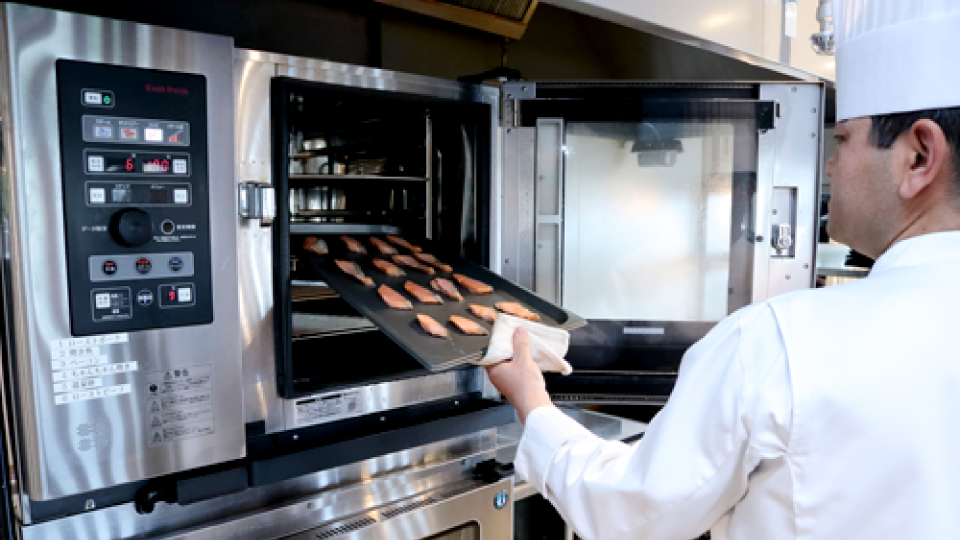 板前の世界に入って27、8年経ちますが、スチコンを使うのはこのホテルが初めてです。最初こそ戸惑ったものの、調理の基本的な知識と技術がベースにあるので「この作業はこの機能に置き換えられる」とか「この機能を使うと時間が〇〇分短縮できる」とイメージできるようになりました。 昔ながらの作業をスチコンへ移行するために試作をし、設定が確定したらどんどんメモリー登録。おかげでかなり効率化が進んでいます。 若い料理人たちにも基本の大切さを教えつつ、機械との上手な付き合い方を伝えていきたいですね。
