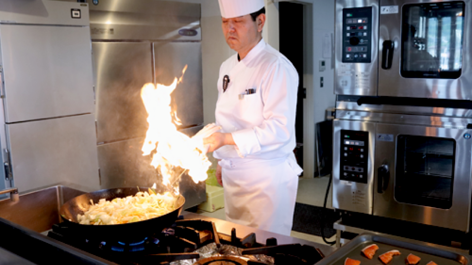 道内の老舗ホテルで修業を重ねた冨谷チーフ。板前の経験を活かしつつ、最新鋭の技術や情報の受け入れにも積極的です。ホシザキのコンサル室から情報を得ることも多いとか。