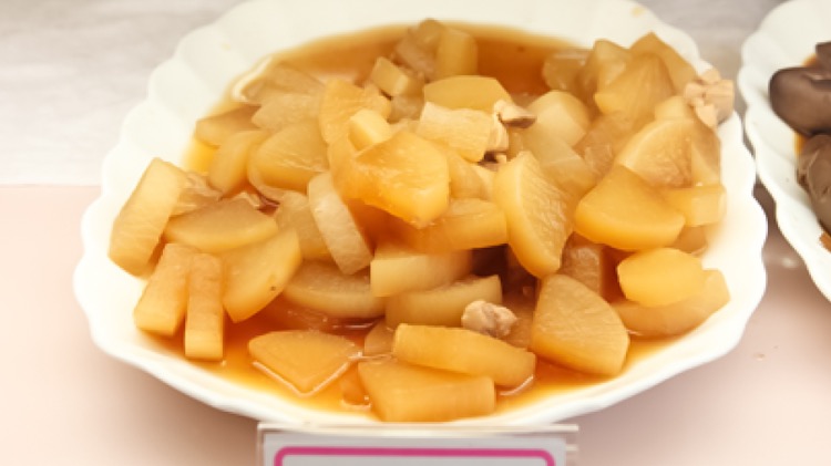 大根の煮物はスチコンであらかじめ下ゆでしておくことで煮崩れもせず、味がよくしみこむ。