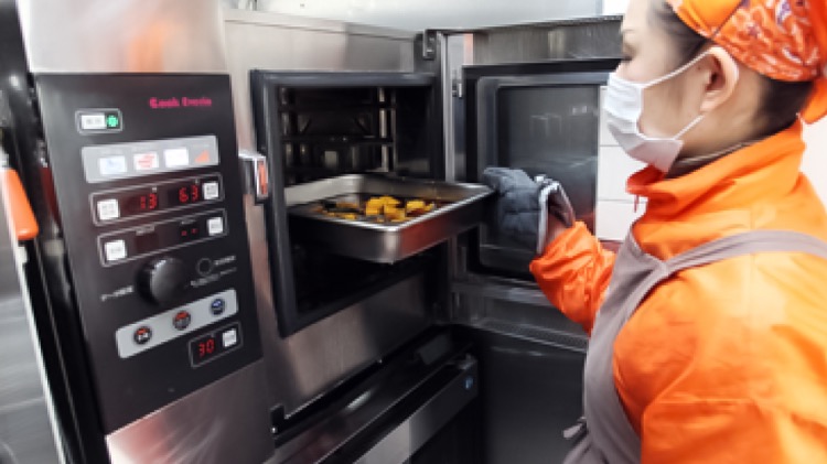 理恵さん 下ゆでするものが多いので、それでスチコンがふさがっている時間が長いんですが、途中でお弁当の注文が入ったら、1台を仕込み用、もう1台をお弁当の作業用に、と切り替えられるから助かります。