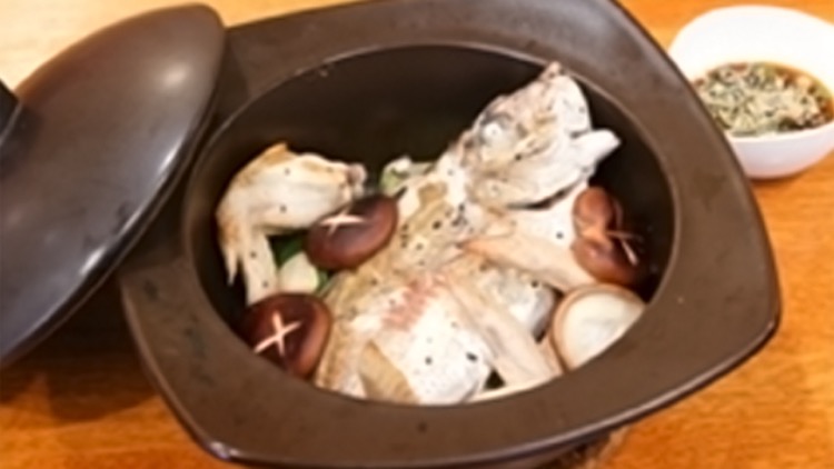 取材後にいただいた「淡路産天然真鯛と手羽先の土鍋蒸し焼き」は、鯛の身が“ふ〜っくら”していて、なんともいえないジューシーさが口いっぱいに広がりました。何もつけなくても美味でしたが、オーナーのいとこさん特製食べるラー油入りポン酢をつけると、また違う味の驚きが。取材陣一同「おいしいっ!!!」の連発でした。手羽先もとても柔らかく、骨から身がホロリとほぐれるほど。おそらく『ひとりで全部食べたい』と思ったのは私だけではないはず…。