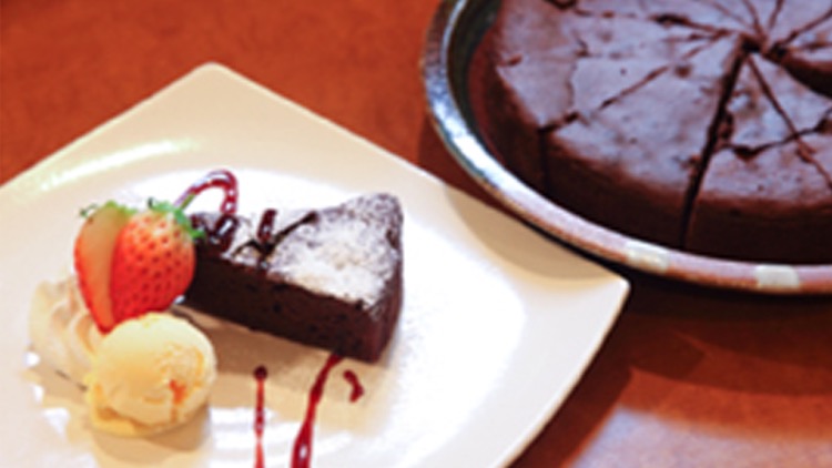 デザート作りは奥様が担当。写真のガトーショコラをガスオーブンで焼いていた時は40分かかっていたのが、スチコンでは25分で焼けるように。