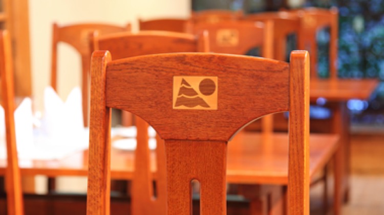 建物・家具・調度品はすべて岐阜県・高山市の「オークヴィレッジ」が手がけた。椅子やカートなどには、お店のマークが彫られている。