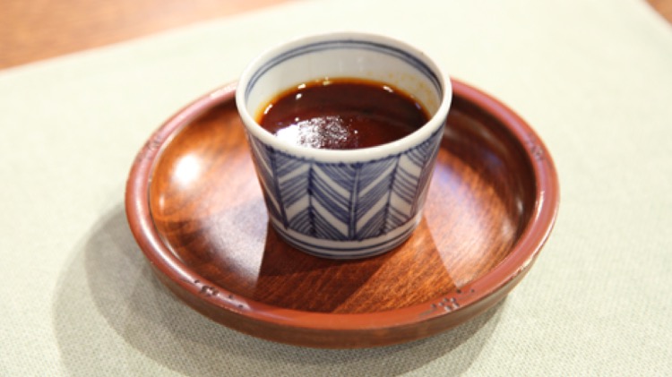試食させていただいた「フォアグラのロワイヤル」。しっとり仕上がったムースをひと口食べるとフォアグラの濃厚な味と香りが口の中に広がりました。そして、トリュフのソースと絡み合って生まれる深みのある味わい。そのおいしさに感動する一方で、気づいたのが和食器の効果。実際に食べてみるまでわかりませんでしたが、和食器でいただくことで、どこかほっとするようなやさしさや温かみを感じ、少し不思議な気分になりました。