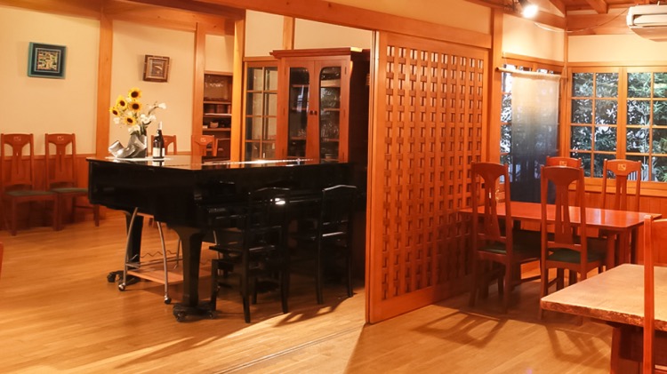 店内にはピアノを常設。ディナータイムにはジャズやクラシックの生演奏を楽しむことができる。