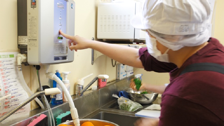 農薬をなるべく使わず安全な野菜を提供したいと考える「野菜百楽」では、調理の際も電解水で食品殺菌し、品質管理に努めている。