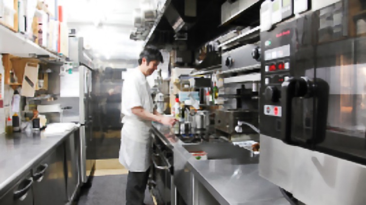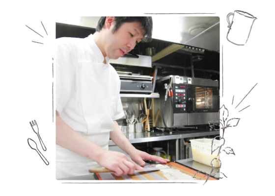 一日のほとんどをお店で過ごすので、同じことばかりやっていると飽きてしまいます。だから私は、料理は「アナログ」、お菓子は「デジタル」と分けて考えるようにしているんです。料理は自分の経験や感覚を頼りに、お菓子は時間と分量をしっかり決めてスチコンに任せる。そんなスタイルでやっていると毎日の作業にメリハリがついて楽しいんです。それから厨房スペースが限られているのでストレスのない動線を確保した設計も大切だと感じますね。