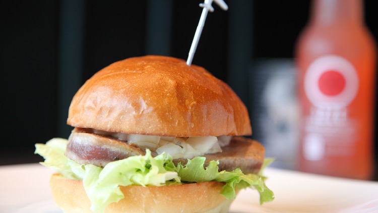 脂の少ないキハダマグロをわさび醤油で味付けた和テイストの「ダグズ・ツナステーキバーガー」(1,100円)。