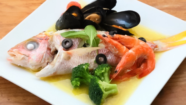 創作料理「ビタローのアクアパッツァ〜石垣島こしょうの香りで〜」はスチームモードで蒸し煮にし、素材の持ち味を引き出した一品。