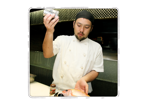 今日作ったのは「ビタローのアクアパッツァ〜石垣島こしょうの香りで〜」。日替わりのおすすめメニューは、その日入った食材にあわせて作るので、このメニューも先程考えたものです。「ビタロー」は沖縄の呼び方で、ハナフエダイのこと。食材だけでなく、調味料でも沖縄にこだわったものをよく使います。今回使った石垣島こしょうの他に「ぬちマース」というやさしい味がする塩を使ったりもしますね。ぬちマースはミネラルの含有量が世界一で、ギネスにも載っている沖縄自慢の塩なんです。