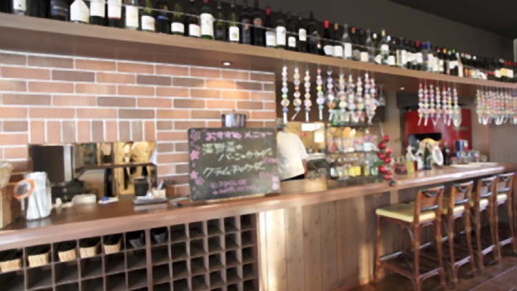 家庭的な温かみを感じさせるカウンターの上に、ズラリと並ぶワインボトル。実は店長がソムリエで、その料理に合ったワインをオススメしてくれるそう。