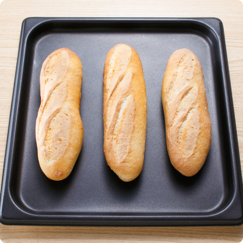 冷凍パン生地でも、十分に発酵してから焼いたものとそうでないものとでは味に大きな違いが出ます。レシピに従って時間通りに解凍・発酵・焼き上げを行いますが、生地の状態をみて所要時間等を判断するのがいいでしょう。