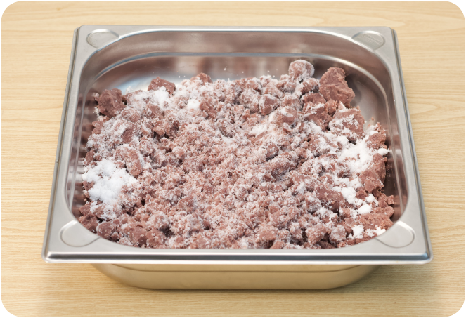 混ぜ合わせたときにホテルパンの周りについてしまったあんは、「こげ」の原因になります。こげてしまった部分は使えないので、スチコンに入れる前にホテルパンの周りの余分なあんは、必ず拭き取ってください。