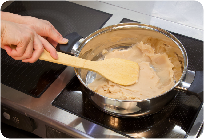 黄身あんを作る際にほどよく水気を飛ばす必要があります。