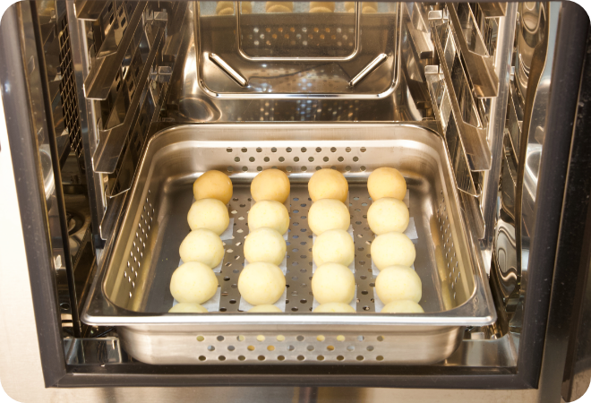 スチコンの場合、蒸すときに温度設定で水分量を簡単にコントロールできます。