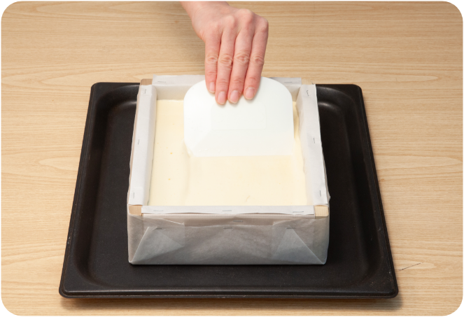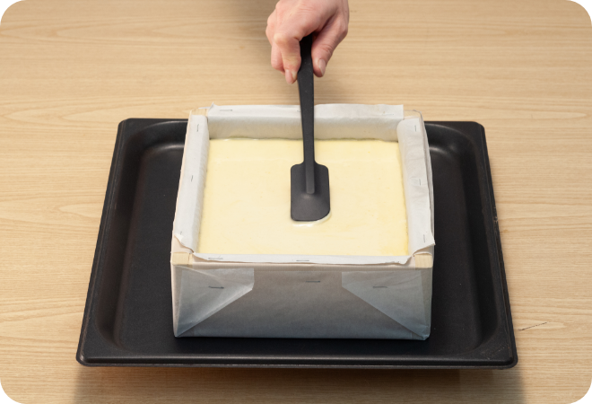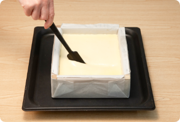 流し込んだ生地の表面を平らにならします。