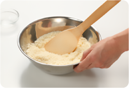 パン粉とサラダ油をよく混ぜ合わせ、20mmのホテルパンに広げます。