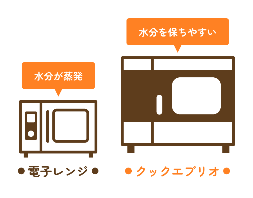 電子レンジとスチコンでは、食材を温める方法が異なります。