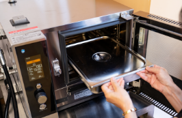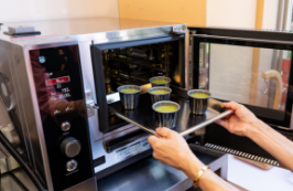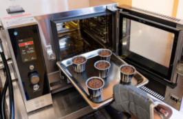 7をホテルパンにのせ【設定1】で加熱する。カヌレ(小)は【設定2】で加熱する。