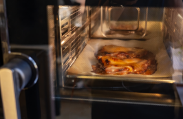 ホテルパンを下段に入れて【設定4】で予熱後、加熱する。